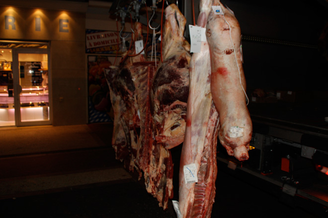 4h30 : arrivage de carcasses viandes en camion frigorifique |